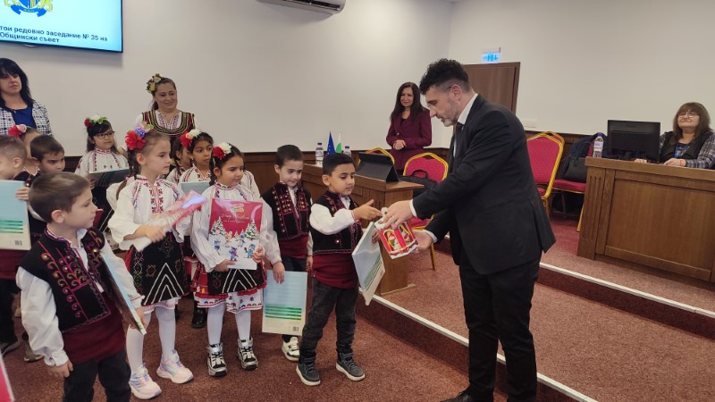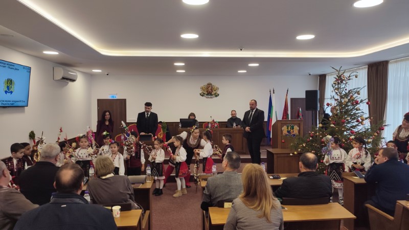 Малчуганите пяха, танцуваха, наричаха и сурвакаха съветници и администрация за здраве и благополучие, а както повелява традицията, за да се сбъднат пожеланията, всички в зала „Пленарна“ дариха малките таланти.