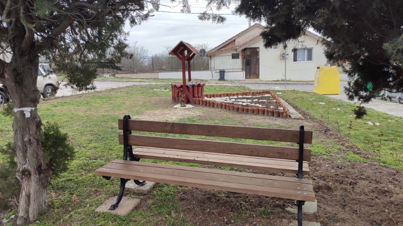 В къта за отдих има още алпинеум с вграден соларен фонтан, резервоар за събиране на дъждовна вода, а около него са засадени храсти, които ще се превърнат в ограда от жив плет. Напролет в градинката ще бъдат засадени цветя, а жителите и гостите на селото ще могат да си почиват и спортуват сред красива гледка.