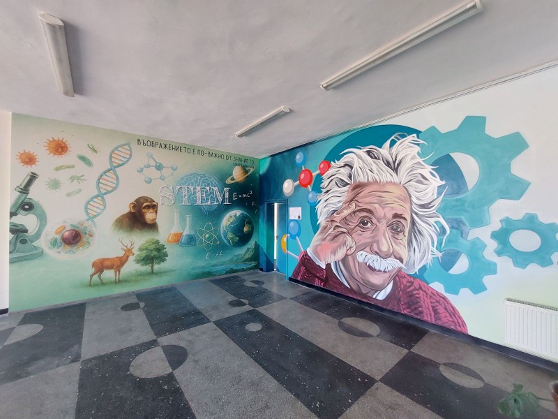 Образът на Апостола на свободата от дни посреща учениците от СУ „Васил Левски“. Портретът на патрона на училището е дело на майсторите на уличната живопис от най-голямата Графити агенция в България TheGraffs. Втора графити картина – с лика на Алберт Айнщайн, оцветява фоайето към STEM кабинета по природни науки.
