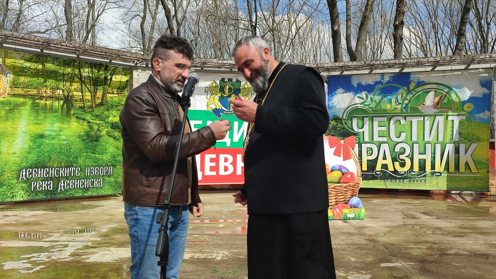 „Нека светлите пожелания за Възкресение от празничния Пасхален благослов на отец Никифор да влязат в сърцата на всеки един от нас, в домовете ни и да ни дарят със здраве, чисти помисли, вдъхновение и много много надежда. Днес повече от всякога трябва да си пожелаем да сме хора, да бъдем по-добри един към друг, да сме заедно, за да можем да се справяме с предизвикателствата на живота. И да покажем, че заедно можем всичко“, заяви кметът Свилен Шитов при откриването на Великденския празник. И пожела на девненци: